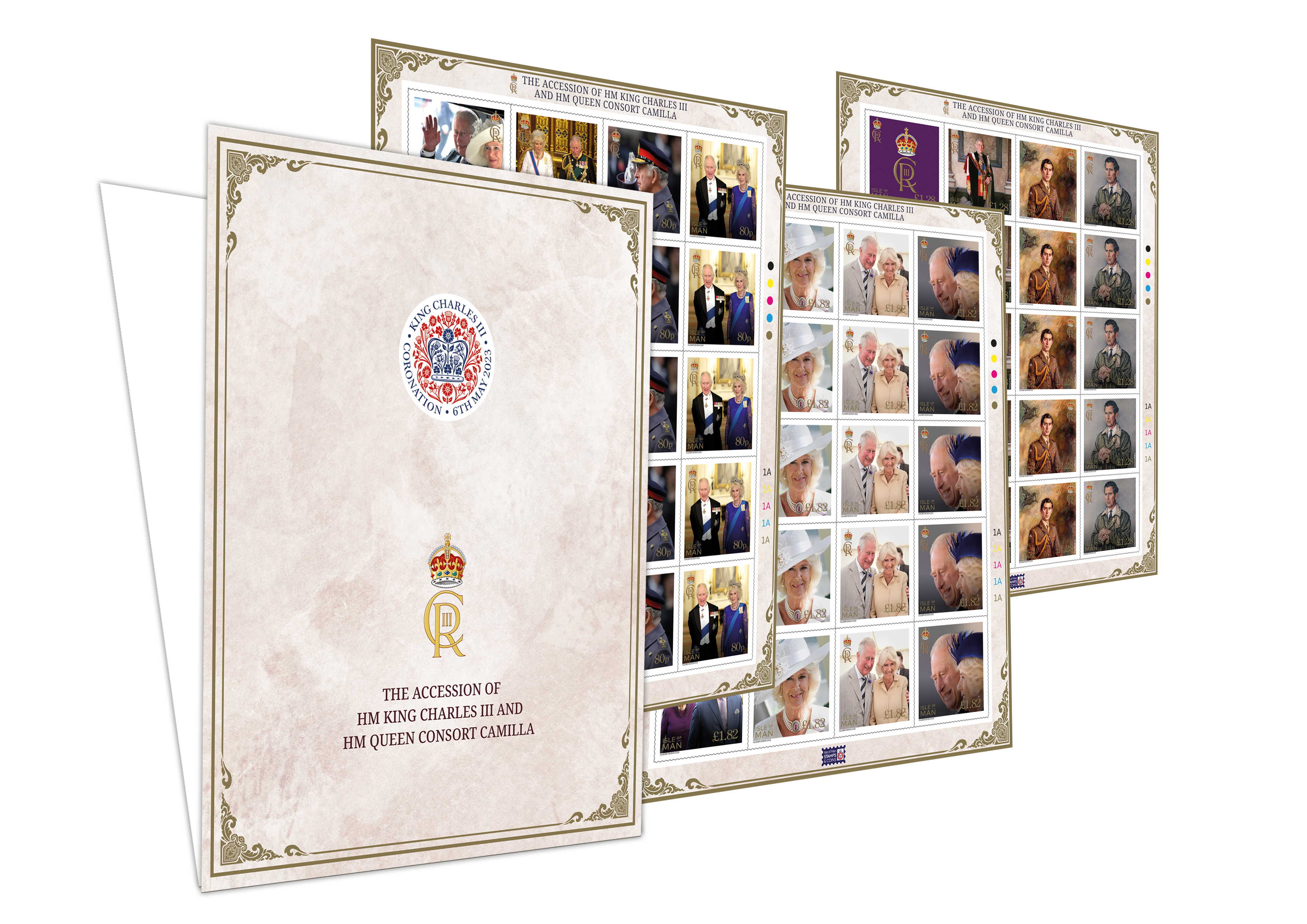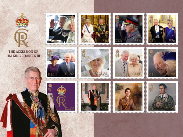 Isle of Man Post Office (IOMPO) is honoured to recognise this historic event with a set of twelve stamps, featuring images of HM King Charles III and HM Queen Consort Camilla alongside portraits of the King and his cypher, to be issued on Monday 3rd April 2023.