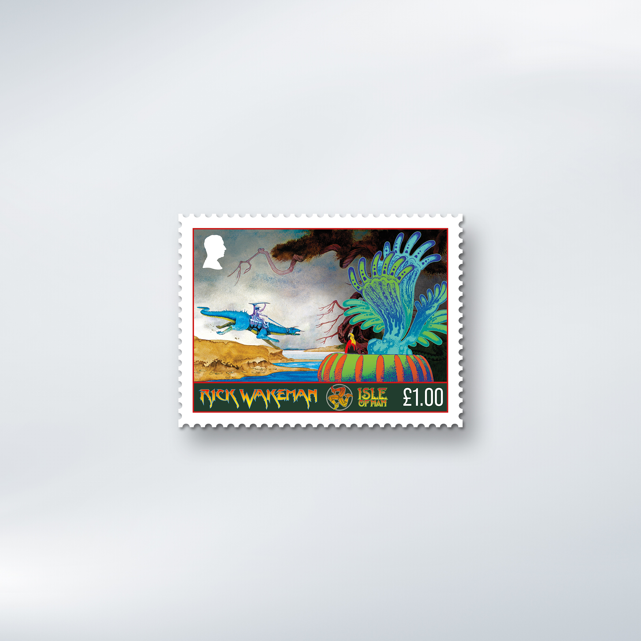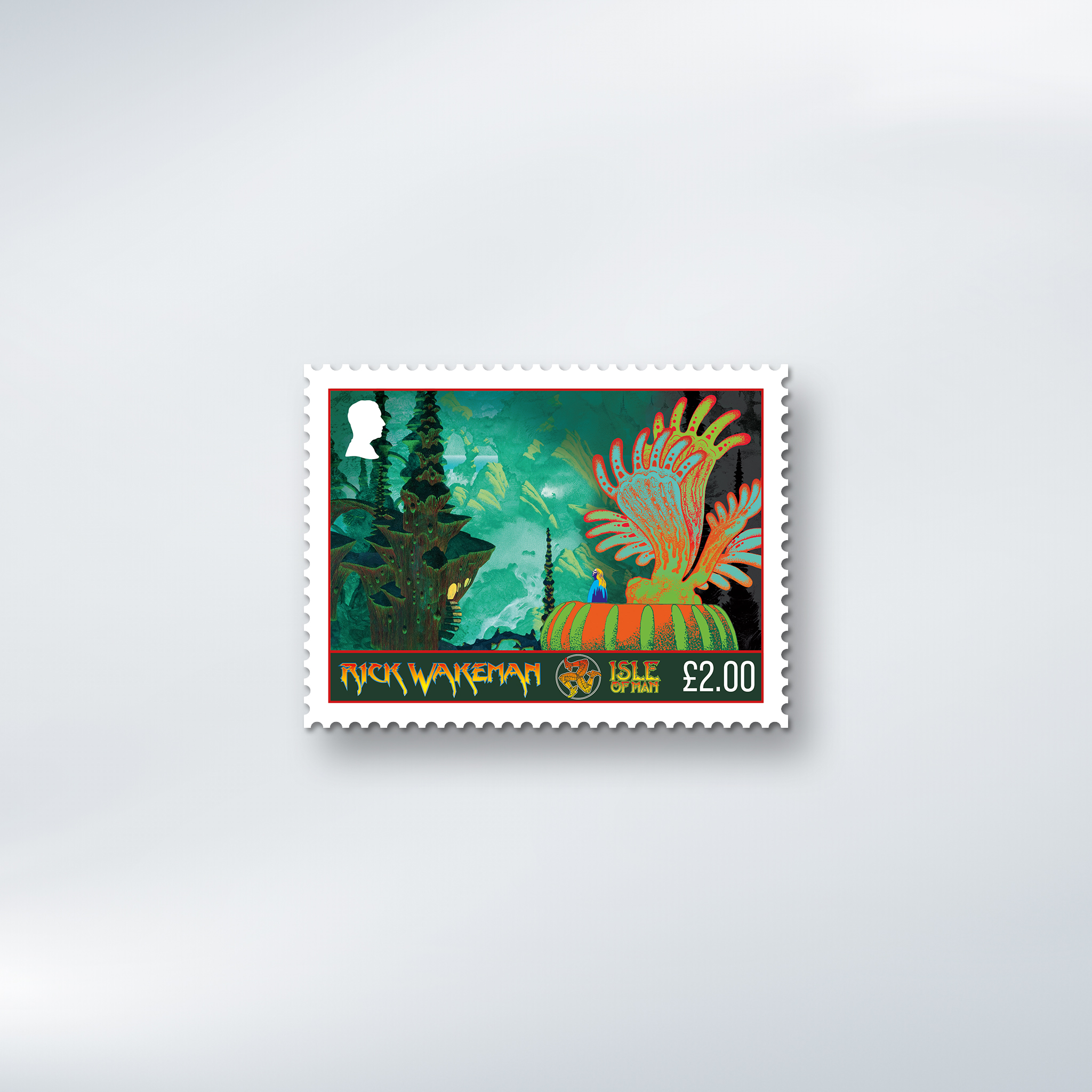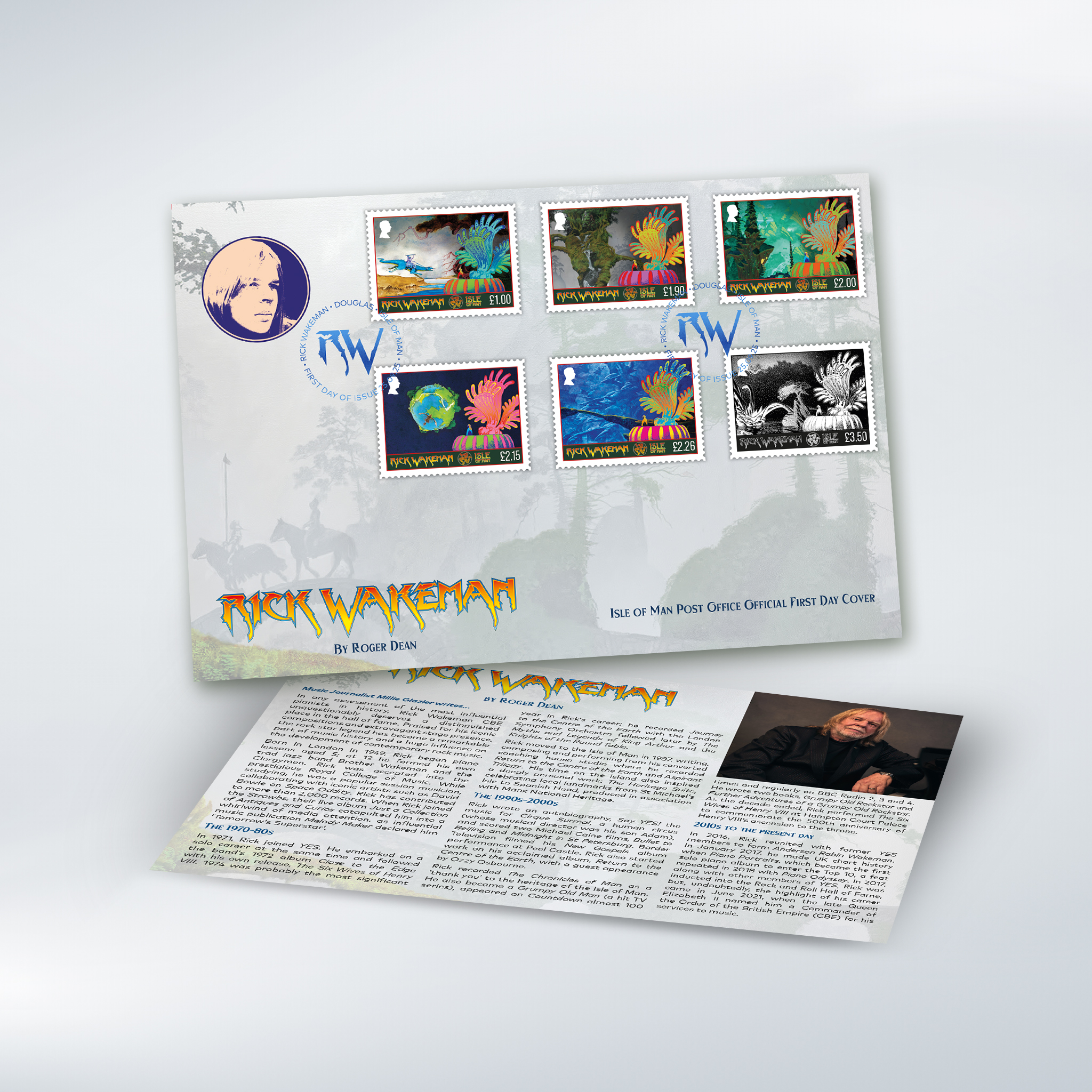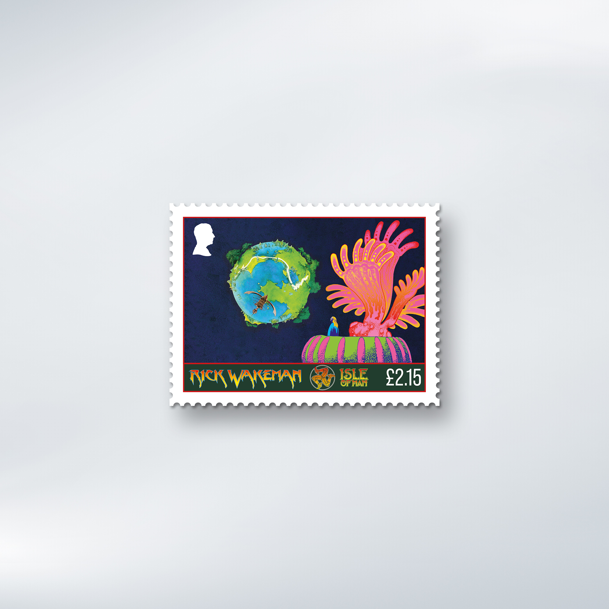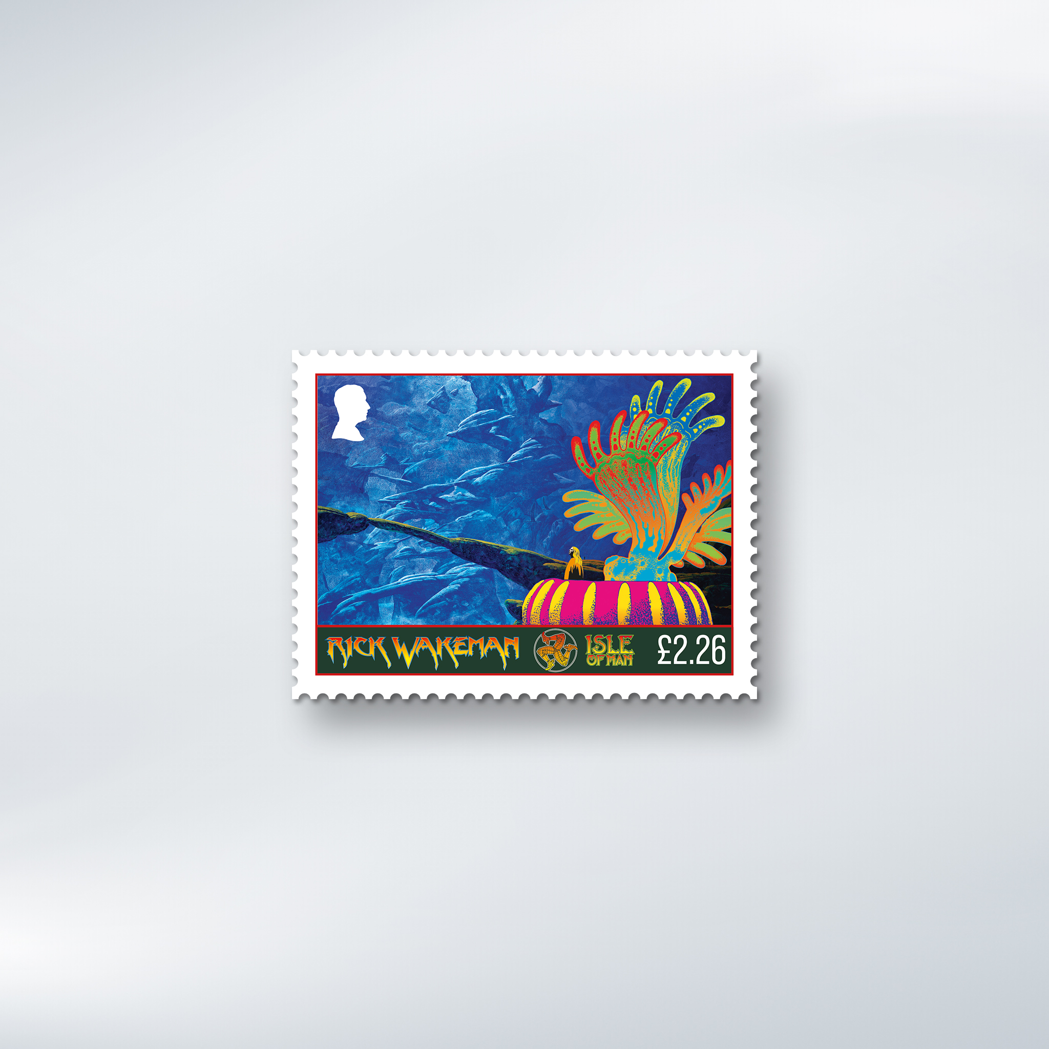 Two giants of progressive rock have come together in a landmark collection of six stamps celebrating the legendary keyboard wizard Rick Wakeman, brought to life through the visionary artwork of Roger Dean.