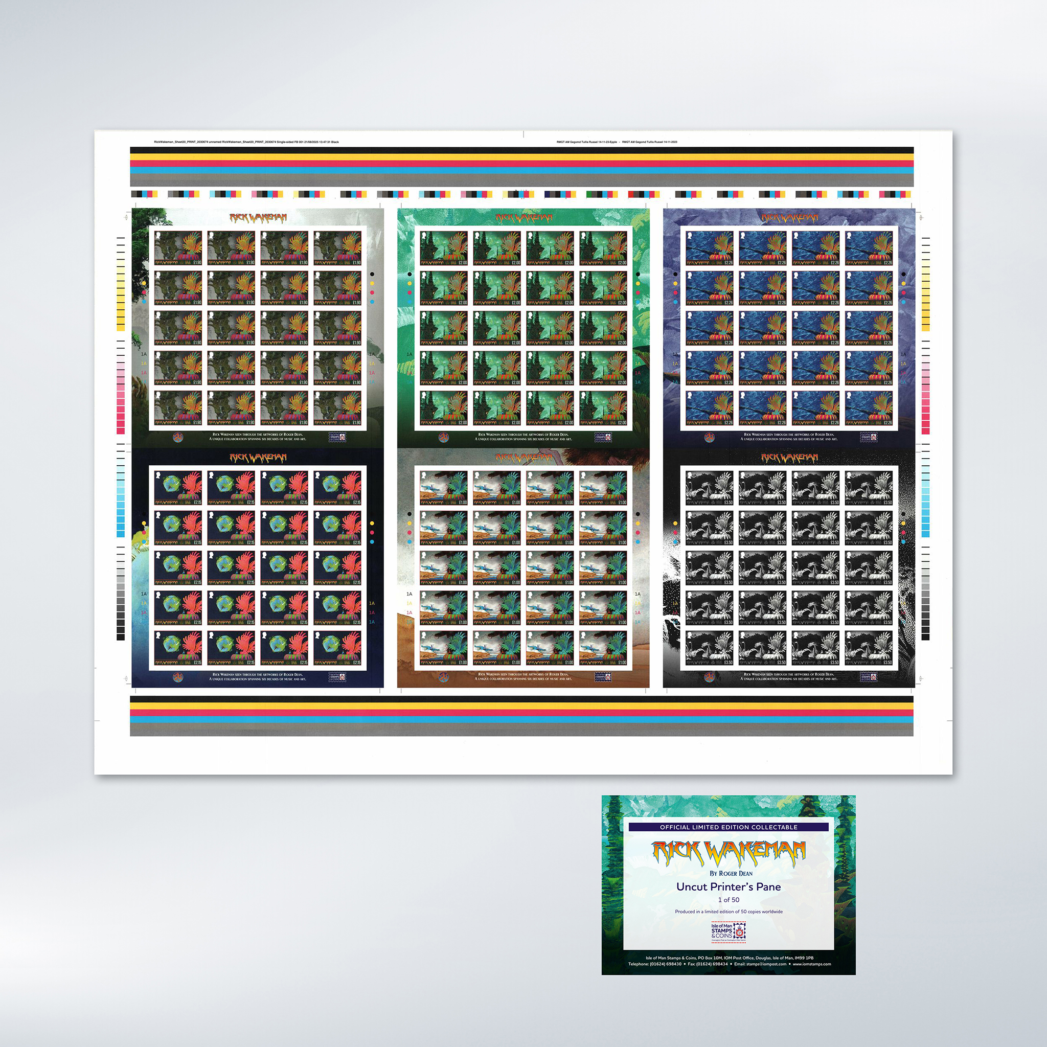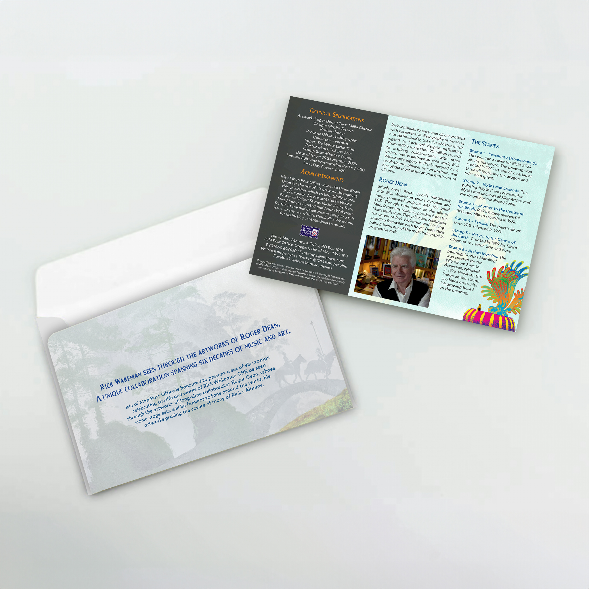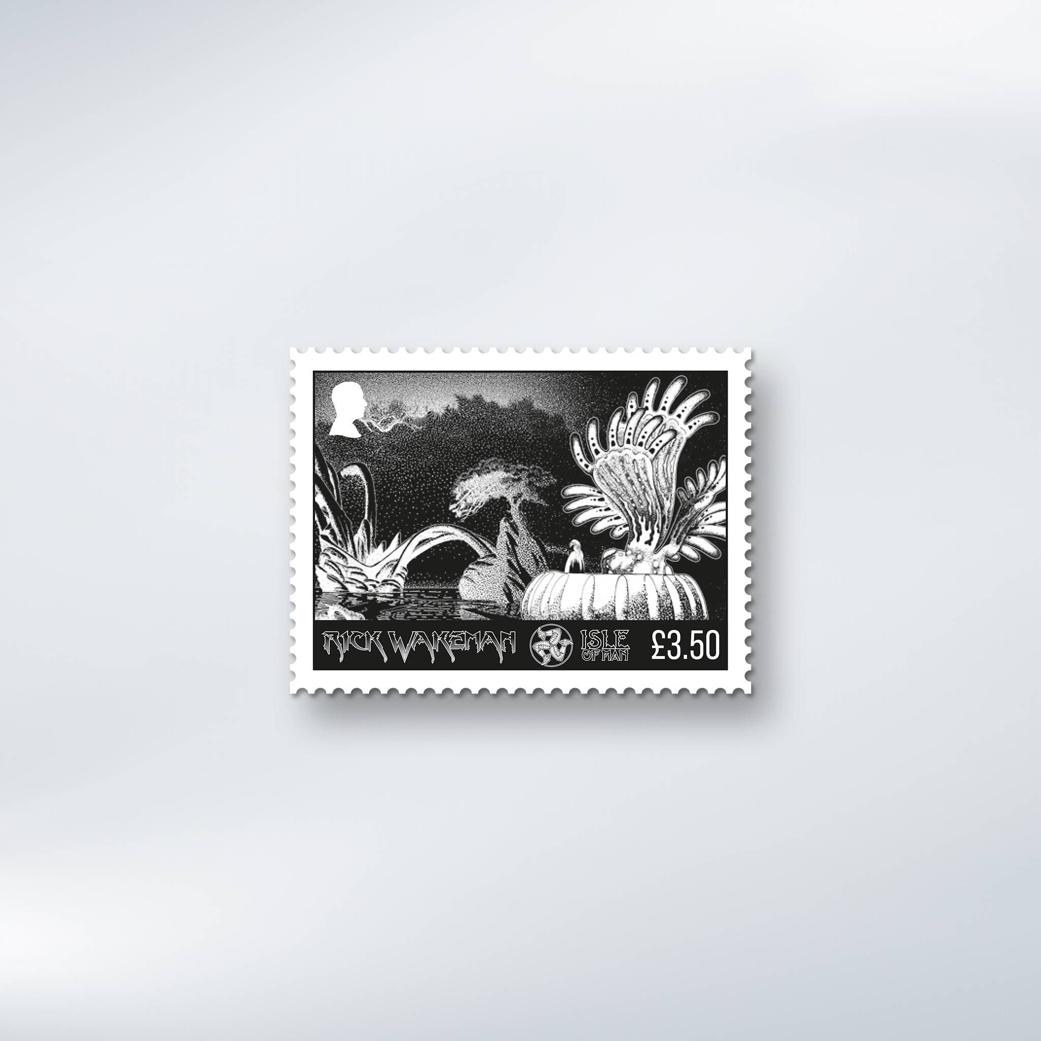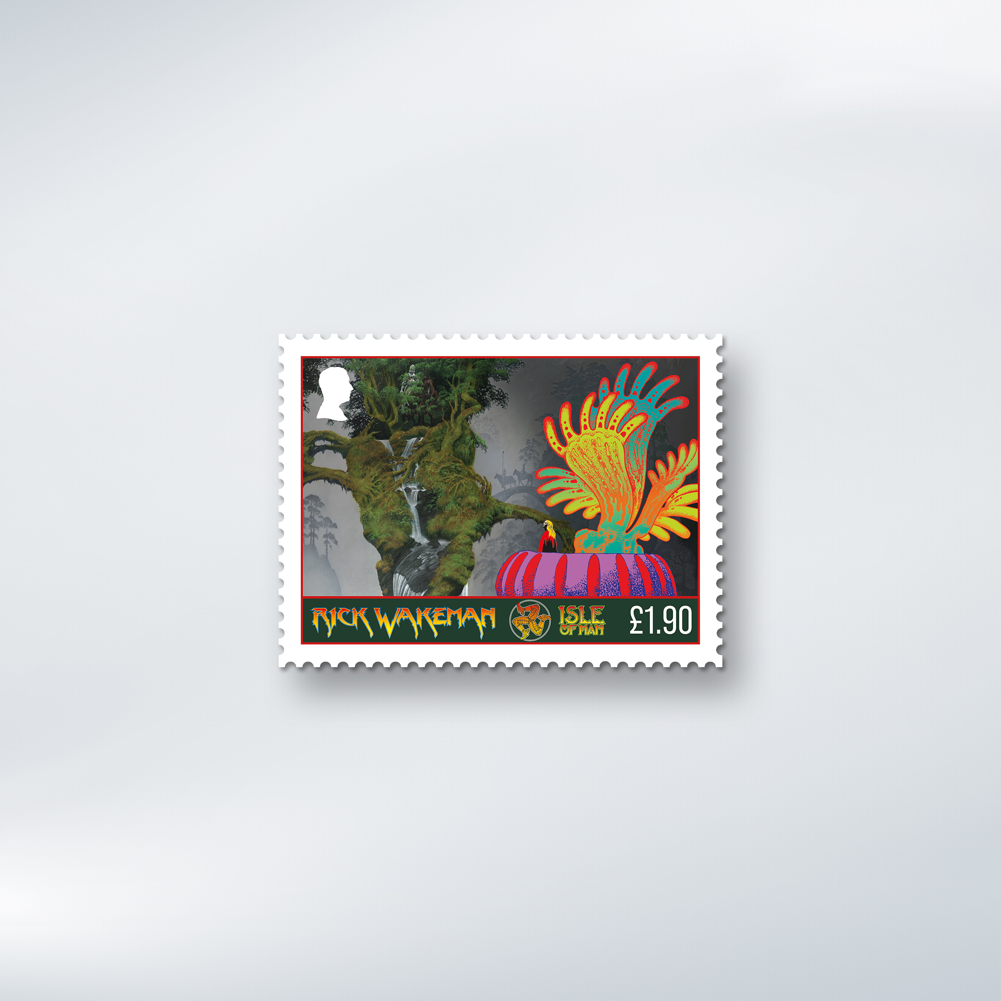 Two giants of progressive rock have come together in a landmark collection of six stamps celebrating the legendary keyboard wizard Rick Wakeman, brought to life through the visionary artwork of Roger Dean.