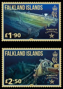 £1.90, £2.50 & S/S Background - Falklands Maritime Heritage Trust & National Geographic £3.60 & FDC image of Endurance - Scott Polar Research Institute |
