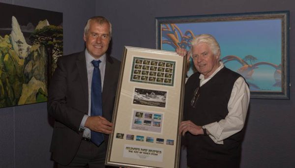Isle of Man Post Office Chairman Ray Harmer presented internationally acclaimed artist and designer Roger Dean, with a framed set of stamps on Friday evening (19th August).
